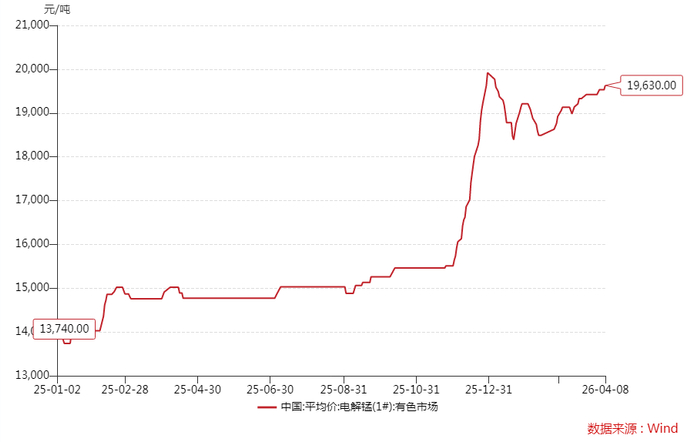 电解锰的价格,经过2025年12月的大幅上涨后,今年一季度亦整体保持在相对高位。