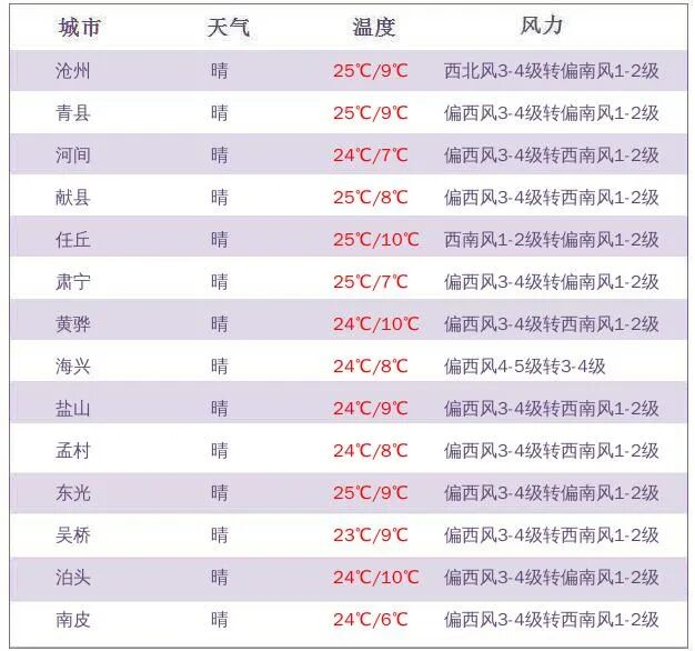 今日10时,沧州全区气温多在12~13℃上下,东光最高,青县最低;和昨天同时刻相比,各县市气温大都下降了3~5℃左右。