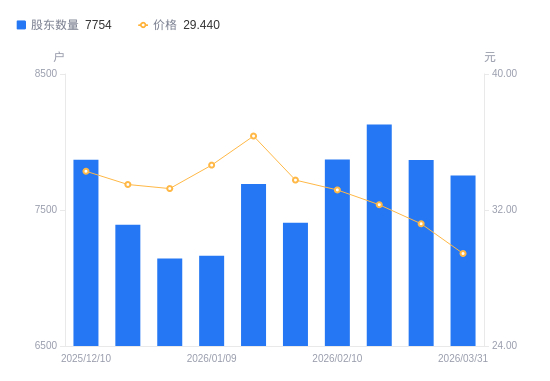 近一年(2025年3月31日至2026年3月31日),洁雅股份A股股东户数从7273户,增加至7754户,增幅6.61%,区间股价上涨60.44%。