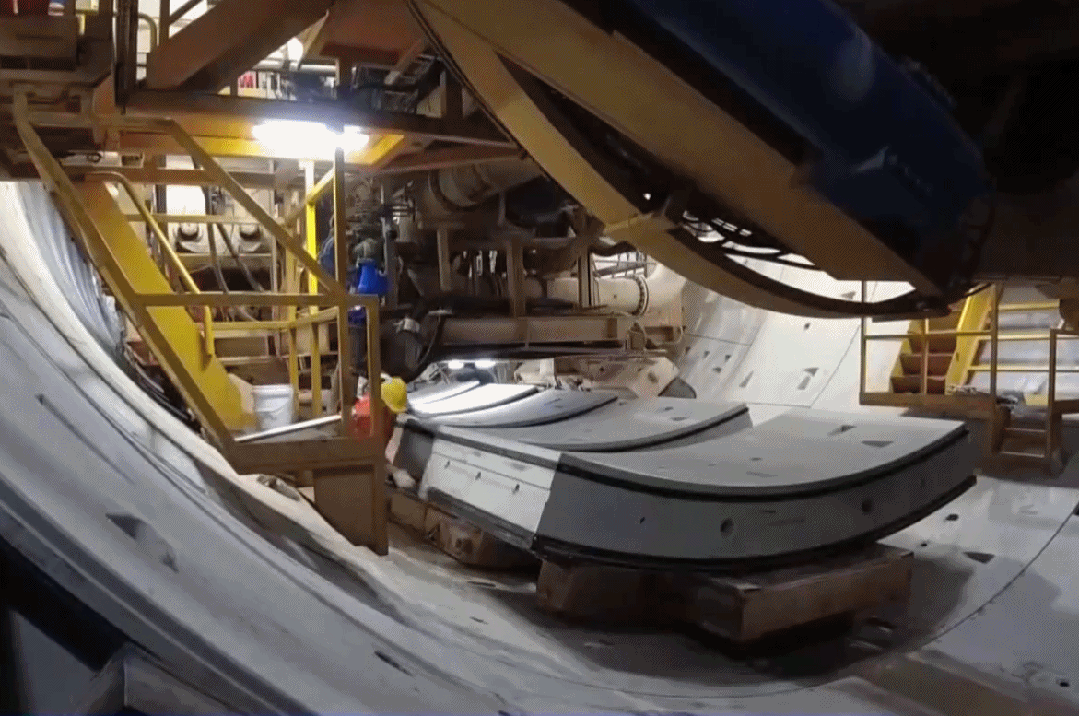 直径超13米的隧道,需要9片管片拼成一圈。这些管片在工厂预制完成,采用“边挖边拼”的方式,可以有效节约施工时间。