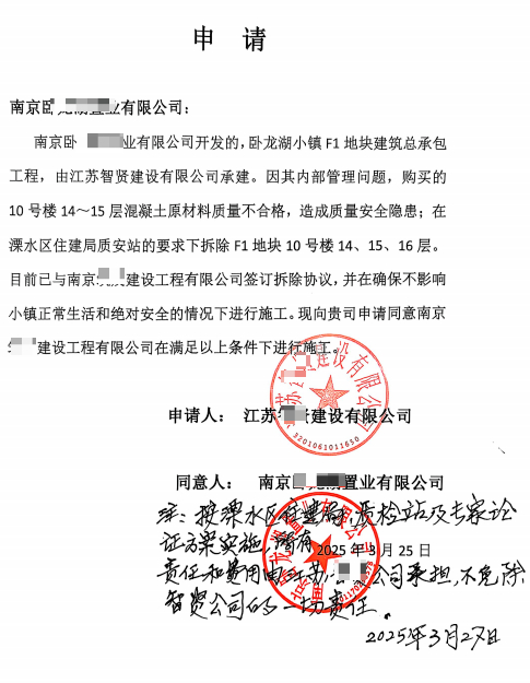 2025年9月,在溧水区建设主管部门监督下,上述楼栋14至16层被彻底拆除。