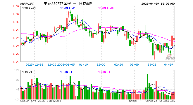 4月9日中证A50ETF摩根(560350)份额减少1400.00万份,最新份额12.16亿份,最新规模15.32亿元