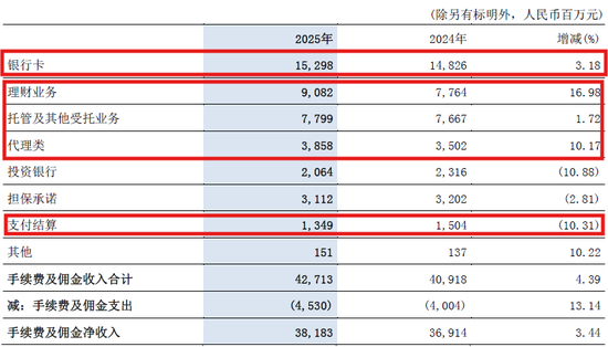 交行的手续费中和其他家最大的差别是银行卡手续费同比居然是正增长。这一点让我百思不得其解。银行卡手续费的大头是信用卡刷卡手续费。2025年多家股份行的银行卡手续费收入都是下滑的,像招行同比降幅更是超过10%。我特意查了交行的信用卡相关数据,无论是贷款余额,还是刷卡交易额,交行2025年同比都是下降的,虽然降幅不大。对此,我也没有太好的解释。交行财富管理相关手续费表现不错,代理类和理财业务都有两位数的增长。