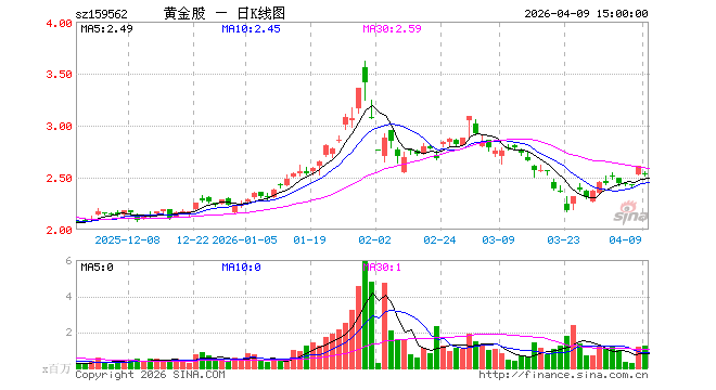 4月9日,黄金股ETF华夏(159562)跌2.80%,成交额3.08亿元。当日份额增加5800.00万份,最新份额为26.40亿份,近20个交易日份额减少1.39亿份。最新资产净值计算值为67.03亿元。