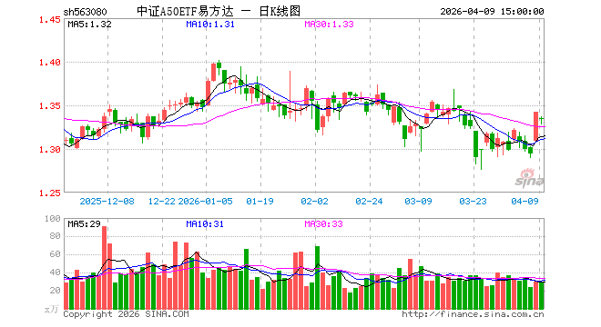 4月9日中证A50ETF易方达(563080)份额减少600.00万份,最新份额12.25亿份,最新规模16.35亿元