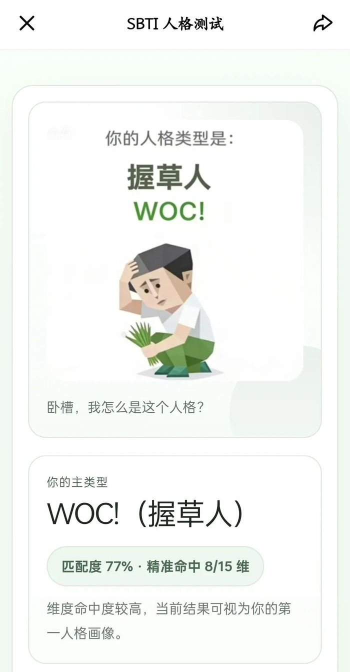 然后我们再看一眼昨晚就爆火的 SBTI。