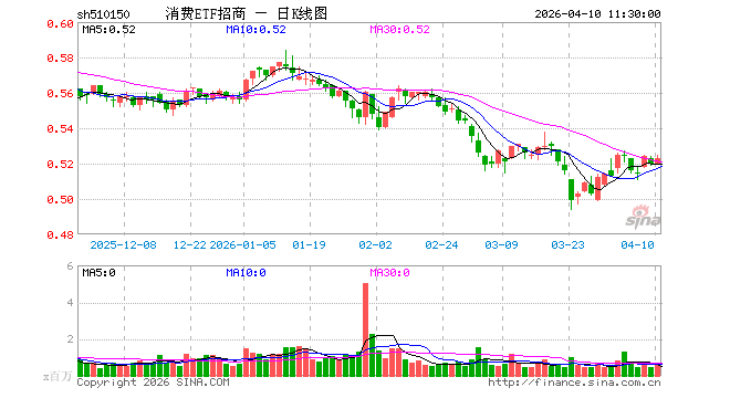 消费ETF招商(510150)涨0.58%,半日成交额3270.38万元