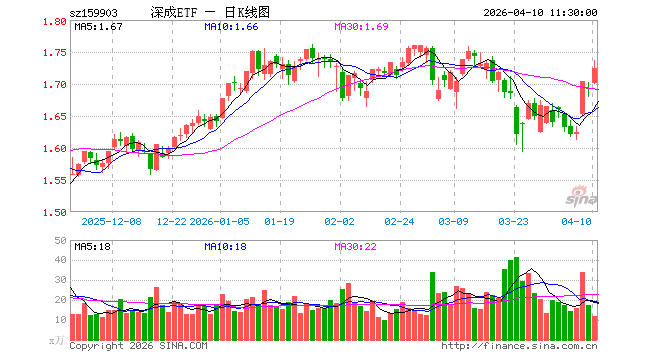 深成ETF南方(159903)涨1.83%,半日成交额2069.03万元