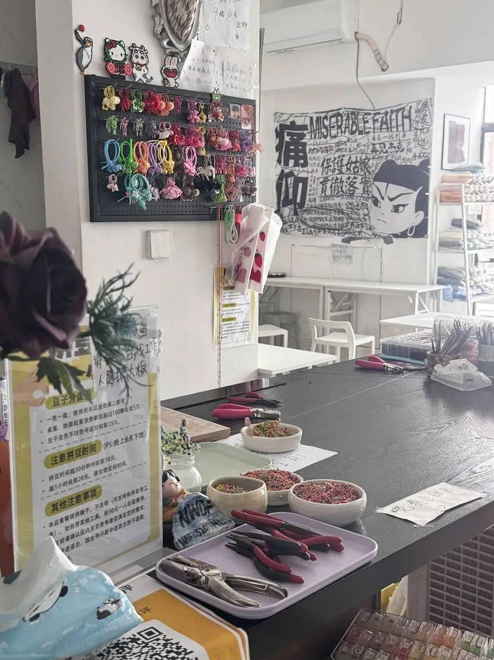 这种看似属于儿童手工的彩色塑料豆粒,正被大量学生和年轻人追捧。有人称之为“治愈经济”的缩影,花几十元买一整天的沉浸式快乐;也有人直指其暴利——材料成本极低,成品溢价惊人。