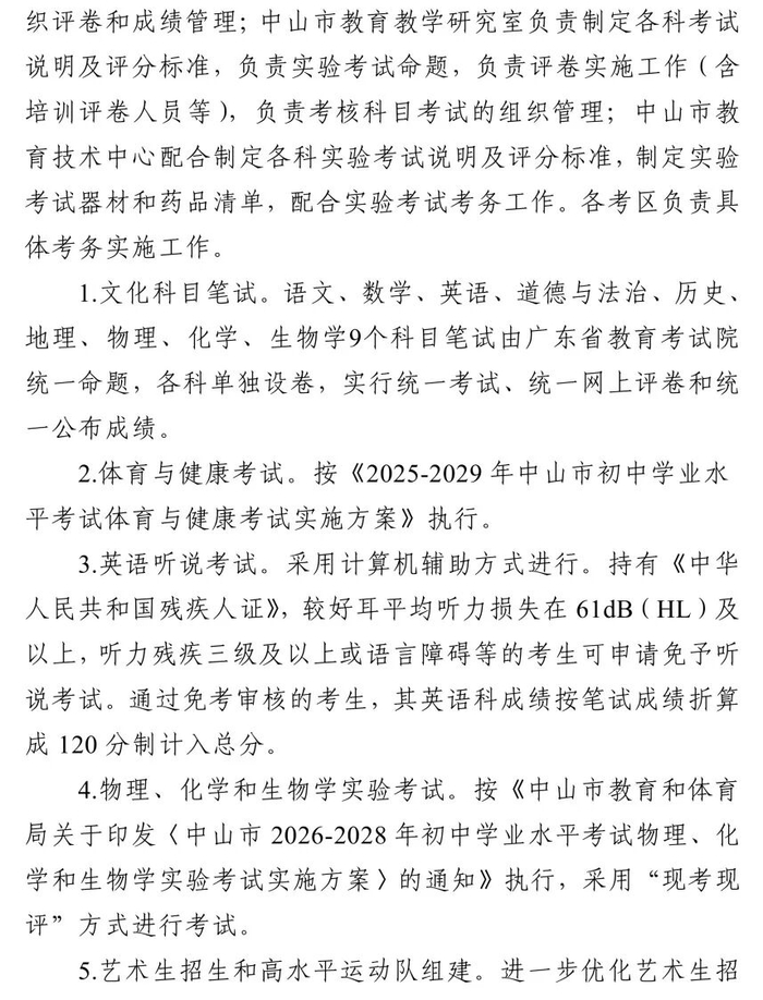 《中山市2026年高中阶段学校考试招生工作方案》已正式出台,我市2026年中考政策总体保持稳定。