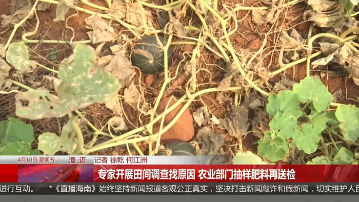 澄迈县农业农村局党组成员全并超介绍,3月25日该局委托省土肥站专家对涉事肥料抽样,种植户、经销商及农业农村局等相关部门均在场见证,样品随后送往北京检测。因检测项目与肥料相关因素匹配度不高,4月1日又将样品转送至武汉检测。