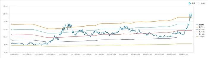截至2026年4月9日,公司市值1396亿元,PE TTM34.6倍,近一年股价上涨110%。机构对其2026年、2027年归母净利润一致预测为增长130.24%、1.58%,2026年预测PE约14.7倍,当前股息率1.61%。市场仍以景气投资与成长的思维看待。
