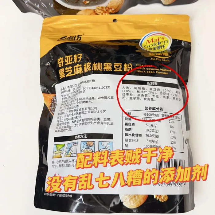 今天,给大家安利一款方便的美味——金磨坊·奇亚籽黑芝麻核桃黑豆粉!
