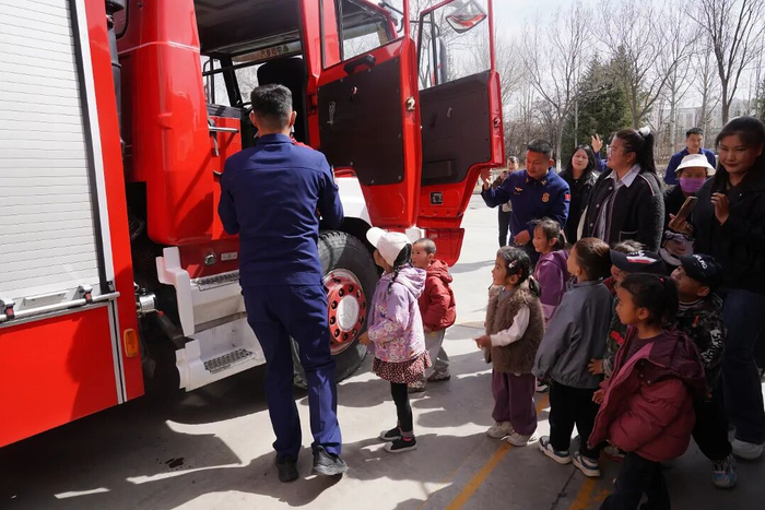 随后,消防员带领大家近距离观摩消防车及各类消防救援装备,用生动直观的方式,细致拆解了每类车辆、装备器材的功能用途及实战应用场景。同时,消防员主动邀请小朋友登上消防车,沉浸式感受消防工作的日常,让孩子们亲身触摸消防装备、体验消防岗位,全方位、深层次了解消防救援职业,有效拉近了师生及家长与消防救援工作的距离,让消防安全理念深深扎根在每个人心中。