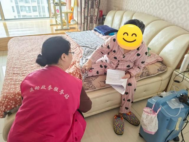 上门后,工作人员关切询问老人身体状况,现场核验身份证、户口本、医院诊断证明等材料,指导家属填写申请承诺书,并全程代办、手把手协助完成人脸认证等关键环节,切实解决了袁阿姨办事跑腿的难题。