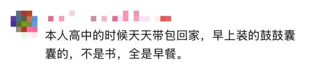 有人分享,高中的时候天天带包回家,早上装的鼓鼓囊囊,不是书,全是早餐,有时两只手还要提满。