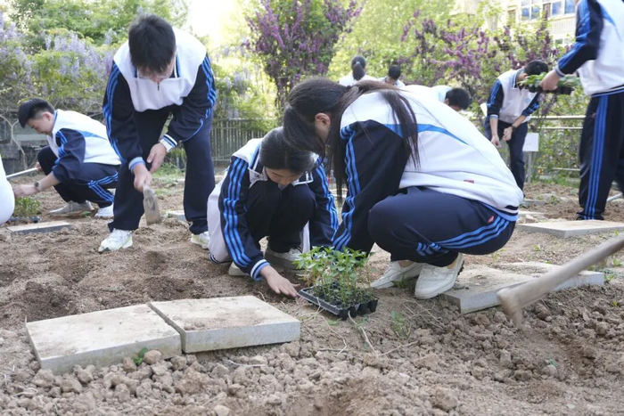 翻土、挖坑、放苗、培土、浇水……同学们分工合作,配合默契。平日里握惯了笔杆的手,此时拿起了小铲子、水桶,虽然动作略显生疏,但每个人都格外认真投入。