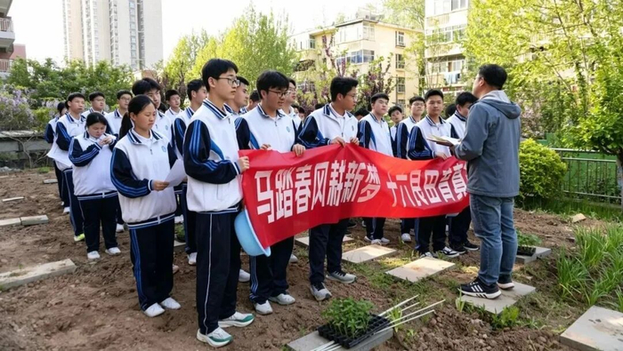 清明时节雨初歇,正是躬耕好时光。2026年4月9日下午,西安市五环中学校园东北角开辟的劳动实践基地里热闹非凡,高一、高二年级16个班的师生代表齐聚田间,共同参加蔬菜种植劳动实践启动仪式。在学校政教处的精心组织下,同学们将在这片充满希望的土地上,亲手种下春天的第一批菜苗,开启一段与土地、劳动、成长相伴的实践旅程。