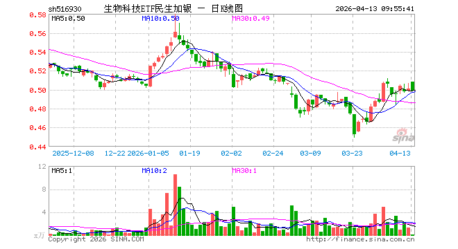 生物科技ETF民生加银(516930)开盘涨1.40%,重仓股药明康德跌0.50%,迈瑞医疗跌0.43%
