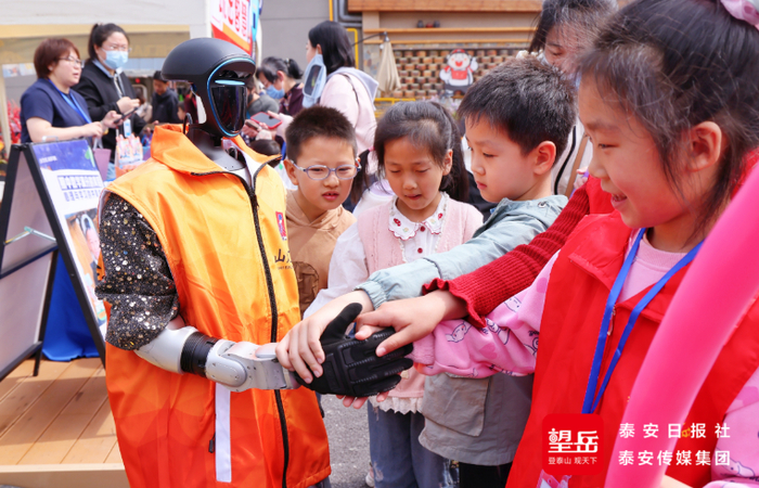 快乐发酵·互动体验区人气高涨。零基础煎饼摊制体验、“卷万物”创意配料自由搭配品鉴、煎饼知识趣味问答、品煎饼猜口味等互动项目,让市民和游客在互动中了解全谷物营养知识,走进煎饼世界;巨型煎饼花惊艳登场,传承人现场讲解精湛技艺;泰山科技学院师生以陶艺复刻古代“陶鏊”,再现千年煎饼起源;卓泰激光用技术在煎饼上刻下《煎饼赋》等文化印记,让人印象深刻;科大讯飞携智能机器人、仿生机器狗亮相,通过智能语音交互、趣味动作表演,为现场观众生动讲解煎饼历史渊源与全谷物知识;NPC、舞狮、小丑定时巡游互动,将现场气氛推向高潮。创意十足的互动体验区,吸引了大量市民和游客热情参与、深度互动。