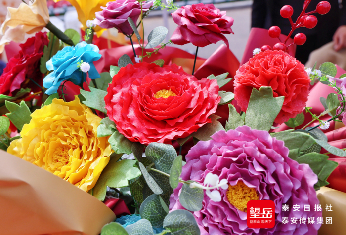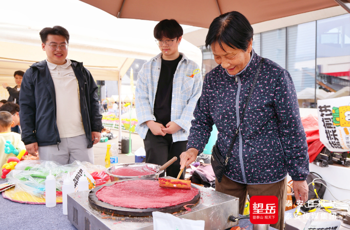 肥美的三文鱼、香醇的烤鸭与煎饼薄韧的饼皮,碰撞出舌尖上的新潮风味;由煎饼制作而成的花朵竞相吐艳,绽放出传统技艺与时代创意的交融之美;音乐派对、动漫演出火热开启,煎饼故事有了年轻化的表达……