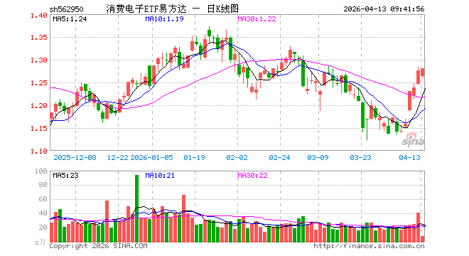 4月10日消费电子ETF易方达(562950)份额减少1000.00万份,最新份额5.96亿份,最新规模7.60亿元