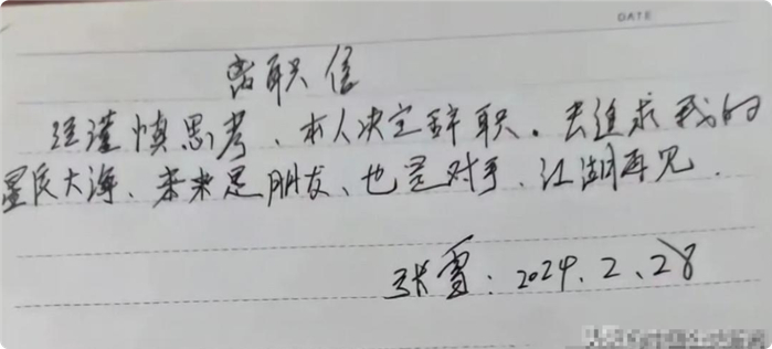 三项答案均为否,张雪当天便提交辞呈。