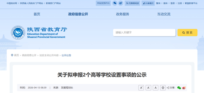 公示!陕西拟新增2个高等学校