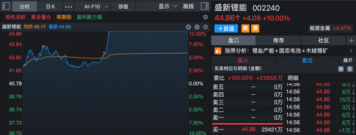 市场热点方面,新能源产业继续保持活跃,今日锂电方向领涨,锂矿板块指数午后一度放量拉升创历史新高。盛新锂能、国城矿业均在中午开盘后直线涨停,大中矿业则在临近收盘涨停。