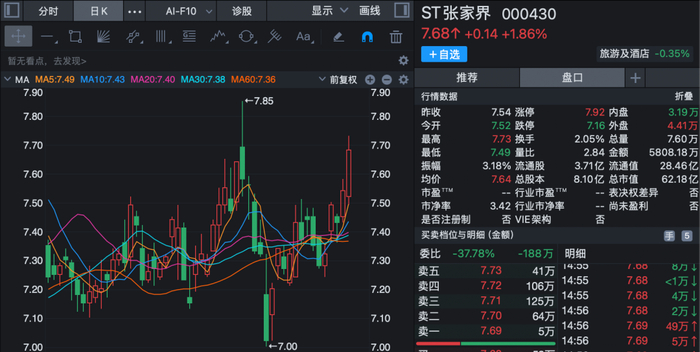 资料显示,ST张家界曾被誉为A股“山水旅游第一股”,属国有控股企业,是目前张家界市唯一一家上市企业。主要经营业务涉及景区景点经营、旅游交通运输、索道、游船、观光电车运输及旅行社、旅游酒店等领域,拥有全资或控股成员公司(单位)7家。