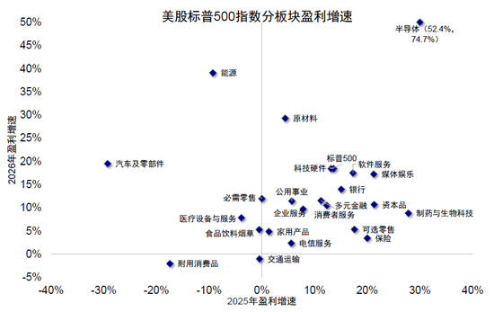 图表:美股半导体、能源、原材料盈利改善