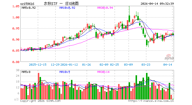农牧ETF建信(159616)业绩比较基准为中证农牧主题指数收益率,管理人为建信基金管理有限责任公司,基金经理为龚佳佳,成立(2022-07-21)以来回报为-7.61%,近一个月回报为-7.86%。
