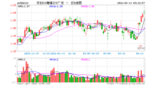 4月14日,双创50增强ETF广发(588320)开盘涨1.26%,报1.608元。双创50增强ETF广发(588320)重仓股方面,中际旭创开盘涨1.63%,新易盛涨1.99%,宁德时代跌1.32%,寒武纪涨0.44%,中芯国际涨1.45%,阳光电源涨0.57%,海光信息涨2.35%,胜宏科技涨0.49%,汇川技术涨0.78%,澜起科技涨3.41%。