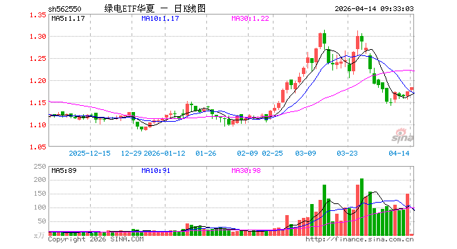 绿电ETF华夏(562550)开盘涨0.17%,重仓股长江电力涨0.00%,中国核电涨0.00%