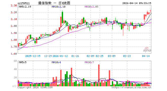 4月14日,通信ETF南方(159511)开盘涨1.28%,报2.216元。通信ETF南方(159511)重仓股方面,新易盛开盘涨1.99%,中际旭创涨1.63%,中兴通讯涨1.06%,中国电信涨0.00%,天孚通信涨0.37%,中国移动跌0.06%,中国联通涨0.00%,分众传媒涨0.32%,巨人网络涨1.33%,中天科技涨0.98%。
