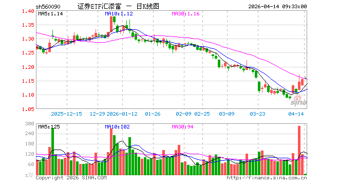 证券ETF汇添富(560090)开盘涨0.43%,重仓股东方财富涨0.90%,中信证券涨0.80%
