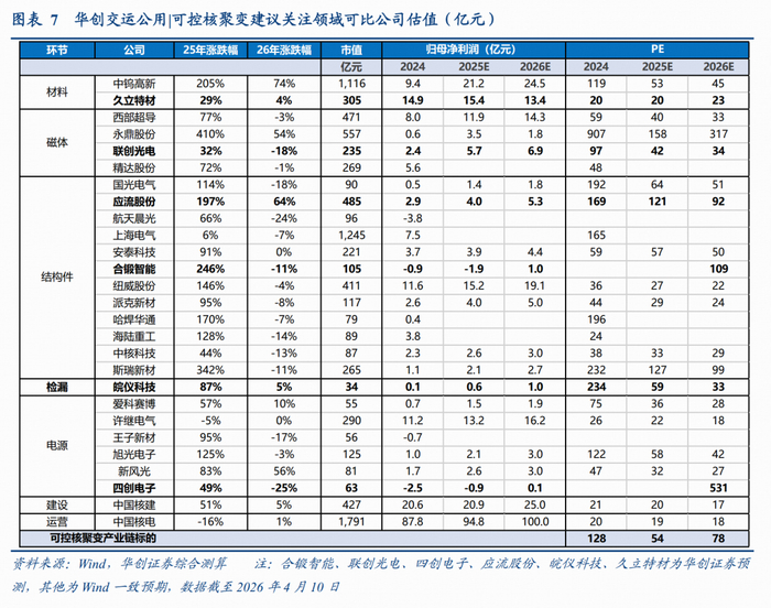 具体内容详见华创证券研究所2026年4月13日发布的报告《华创交运公用可控核聚变双周报(第10期):诺瓦聚变完成7亿元天使+轮融资,美国聚变监管框架加速落地》