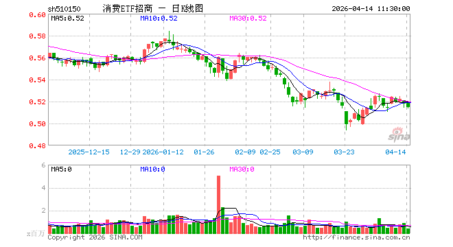消费ETF招商(510150)跌0.58%,半日成交额1884.44万元