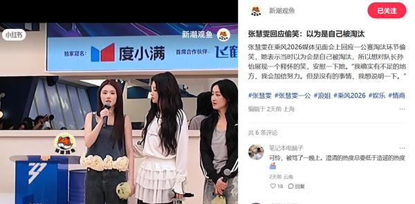 好在4月11日,节目组就安排了乘风春日见面会,观鱼也赴长沙参加了这场群访。原本活泼开朗的张慧雯,当天红着眼眶上场,她主动解释了被反复截图的“偷笑”风波。
