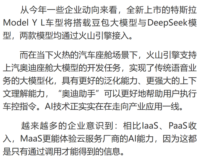而且,手机厂、汽车厂、学习机厂都在想办法给豆包植入到硬件里,去年中兴的豆包手机,今年的特斯拉毛豆Y,奥迪的座舱大模型,都有豆包的参与。