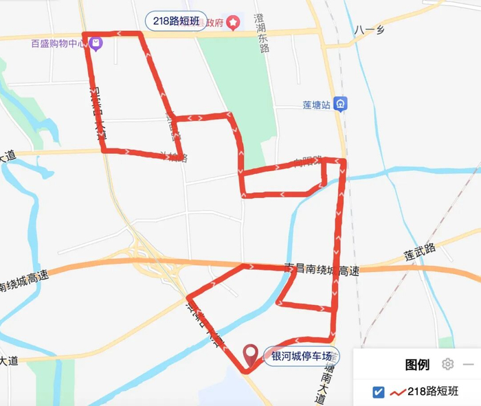 1.线路走向:银河城停车场—迎宾中大道—汽车大道—斗南路—沿河南路—陈田路—莲塘南大道—莲塘中大道—向阳路—五一路—沿河北路—农贸路—农贸西路—澄湖西路—澄湖中路—莲西路—洪州大道—迎宾中大道—斗柏路—莲西路—澄湖中路—澄湖西路—向阳路—莲塘南大道—安宝大道—银河城停车场;
