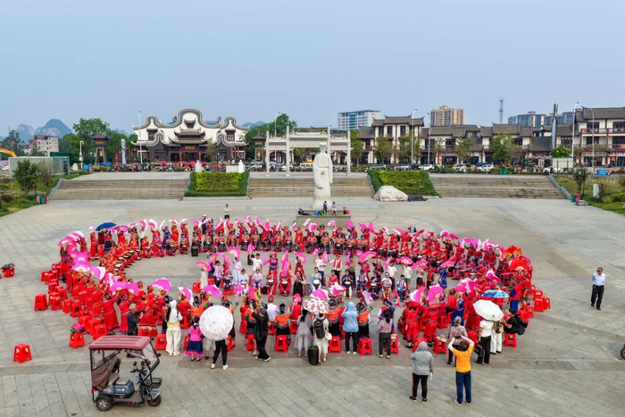 活动内容:将举行盛大迎宾活动,百鼓齐鸣、舞龙舞狮、竹竿舞、非遗山歌、圆圈舞五大方阵震撼亮相,非遗展示、彩调展演、千人共品五色饭、山歌对唱等精彩环节,尽展武宣民俗风情与民族团结风采。