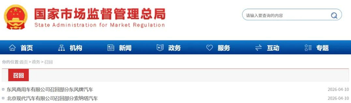 召回编号S2026M0042V:自2026年4月21日起,召回2025年9月1日至2025年10月13日期间生产的部分第十一代索纳塔汽车,共计953辆。