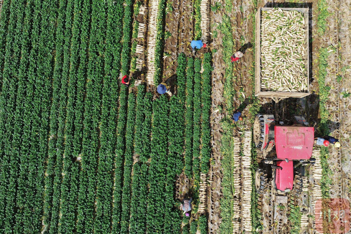 4月14日,在四川省南充市嘉陵区河西镇,当地村民正在收萝卜。