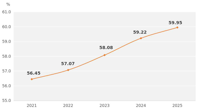 图1 2021-2025年河南省三次产业增加值占地区生产总值比重