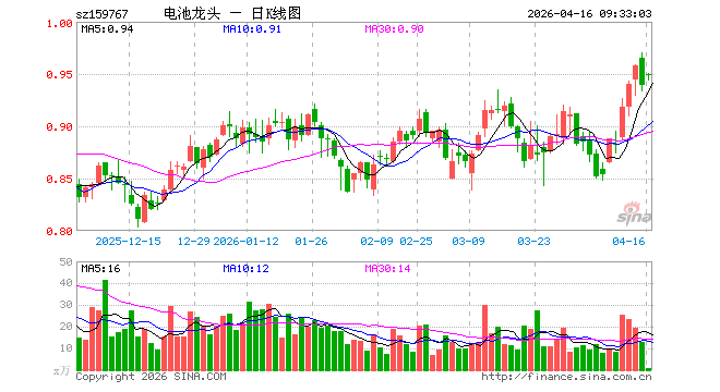 电池龙头ETF兴银(159767)开盘涨1.06%,重仓股比亚迪涨0.24%,宁德时代涨2.32%