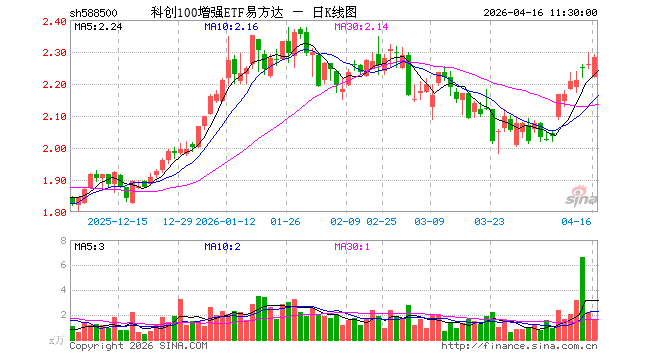科创100增强ETF易方达(588500)涨1.02%,半日成交额372.56万元