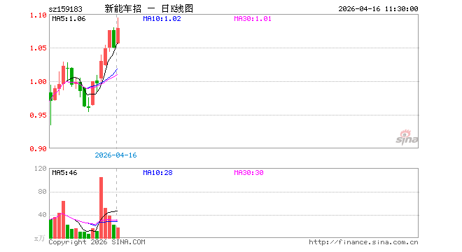 新能源车ETF招商(159183)业绩比较基准为中证新能源汽车指数收益率,管理人为招商基金管理有限公司,基金经理为廖裕舟,成立(2026-03-13)以来回报为5.39%,近一个月回报为5.39%。
