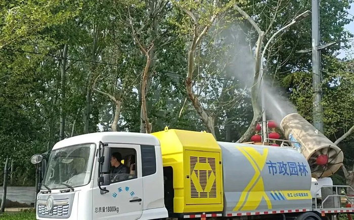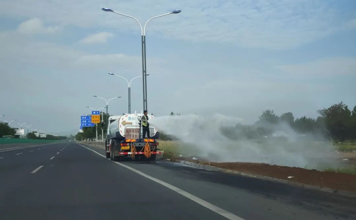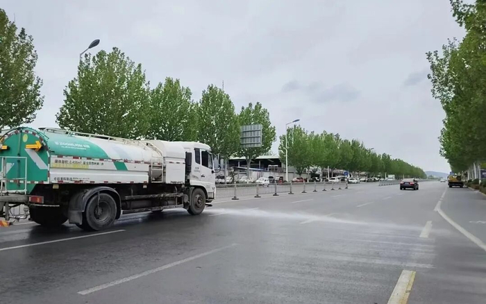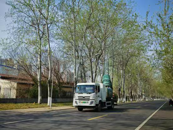 高压水车喷洒:在夜间或凌晨车流人流较少的时段,利用高压水枪对树冠进行喷淋,打湿飞絮使其提前飘落,防止其远距离扩散。