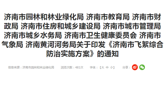 近日,济南九部门印发《济南市飞絮综合防治实施方案》。